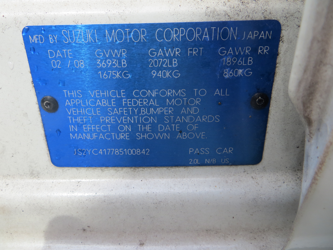 Vehicle Inquiry for 2008 Suzuki SX4 Sedan TOURING 2