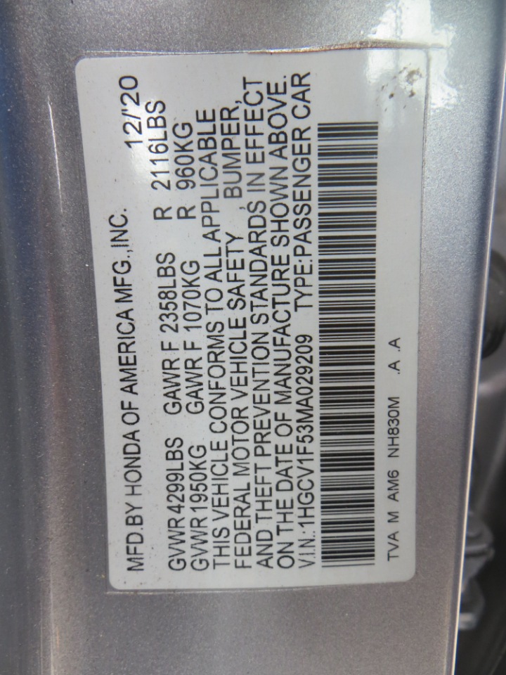 Vehicle Inquiry for 2021 Honda Accord EX-L